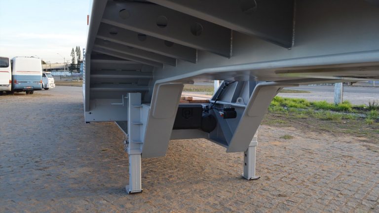 - Longarinas: Vigas perfil “I” aço de alta resistência mecânica, com travessas em perfil “G”, interligando as longarinas com as laterais, fechamento lateral em perfil “U”.