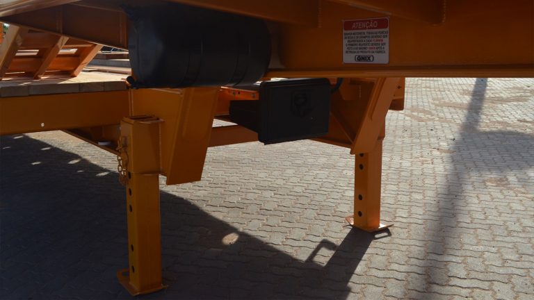 - Pontos de ancoragem nos perfis laterais em toda plataforma de carga (na região entre eixos e na plataforma central) para amarração de carga por corrente a cada 750mm.